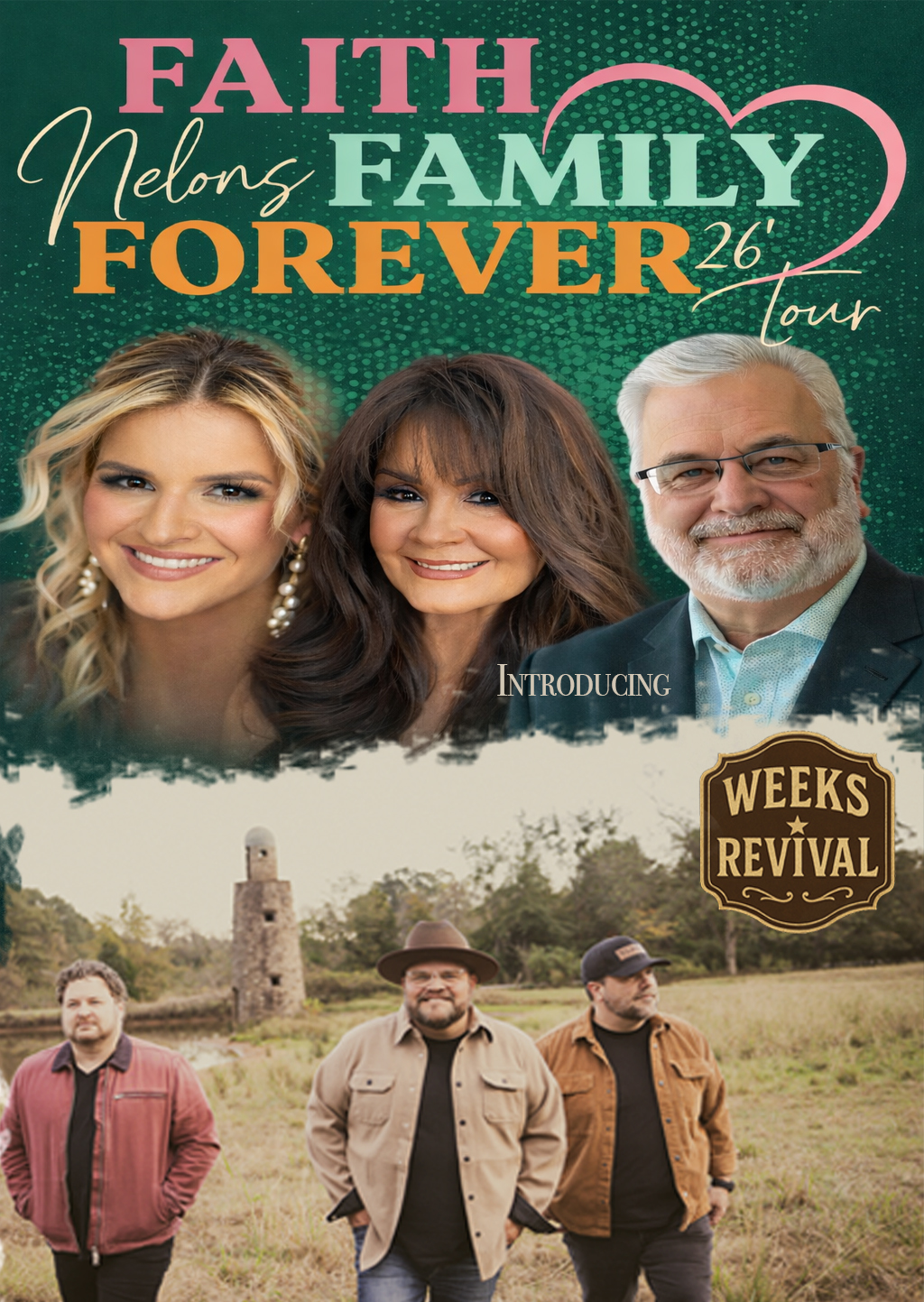 More than a vocal trio, Weeks Revival is also a band of musicians, bringing a full and engaging presentation to every event. Signed to New Day Records under the Daywind label, their prayer remains simple: to serve the Lord faithfully and see lives changed through the message of the Gospel.
